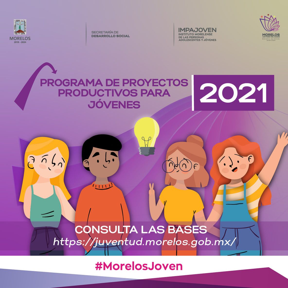 El Instituto Morelense de las Personas Adolescentes y Jóvenes (IMPAJOVEN) lanzó la convocatoria para el “Programa de Proyectos Productivos para Jóvenes 2021”, misma que tiene como objetivo impulsar la creación y fortalecimiento de los modelos de negocio promovidos por el sector poblacional de entre los 18 y 29 años de edad.