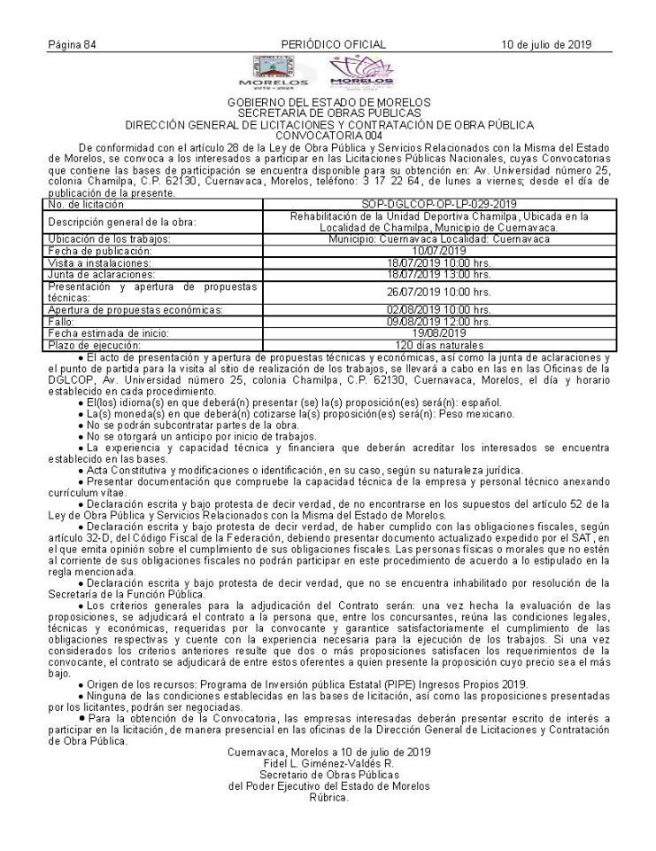 La convocatoria fue publicada en el Periódico Oficial “Tierra y Libertad”, y las bases completas se encuentran en las oficinas ubicadas en avenida Universidad número 25, en la colonia Chamilpa de Cuernavaca, o la puedes consultar de forma digital aquí: http://periodico.morelos.gob.mx/periodicos/2019/5722.pdf