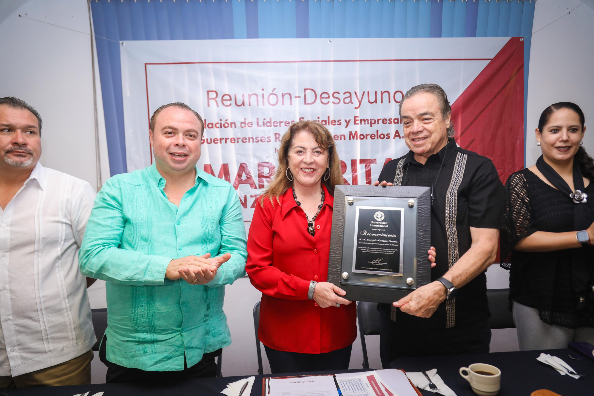 En una reunión con líderes guerrerenses y morelenses en diversos ámbitos, Margarita González Saravia intercambió propuestas integrales para ampliar y reforzar las alianzas estratégicas y regionales entre Guerrero y Morelos para el impulso de proyectos económicos, empresariales, turísticos, culturales y educativos que beneficien a ambos estados.