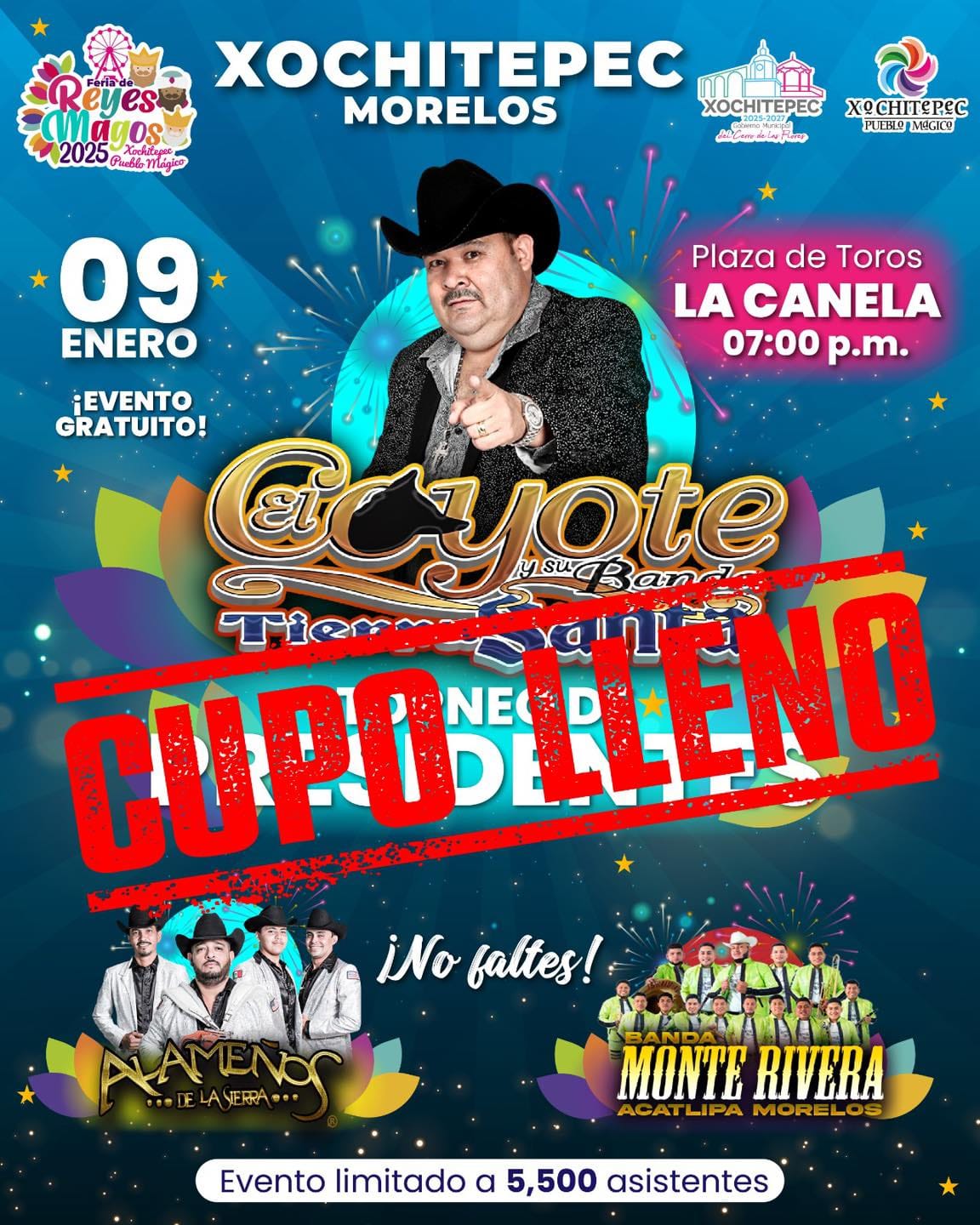 El Ayuntamiento de Xochitepec, bajo la administración de Roberto Chalo Flores, ha reportado un lleno total en la Plaza de Toros “La Canela” durante la presentación de El Coyote, que se lleva a cabo esta noche.