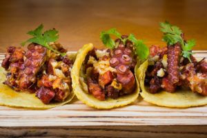 Los mejor del mar, tierra, este delicioso taco incluye: Pulpo a la brasa, chuleta ahumada, longaniza y chicharrón de cerdo con queso manchego.