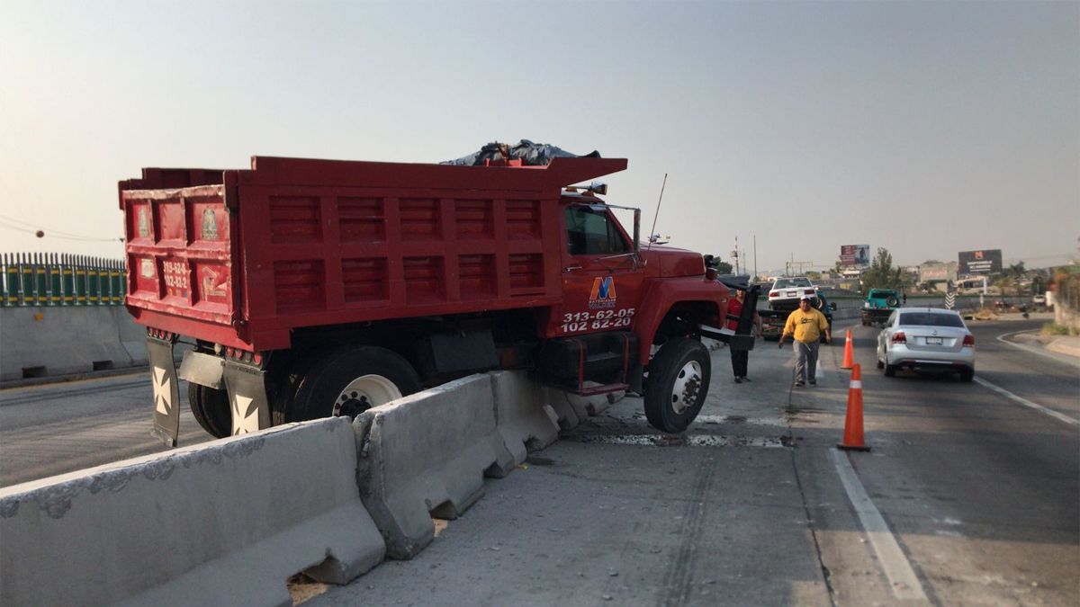En otro hecho, el conductor de un camión de carga perdió el control de la unidad y fue chocando por varios metros contra los muros divisores hasta quedar encima de ellos.
