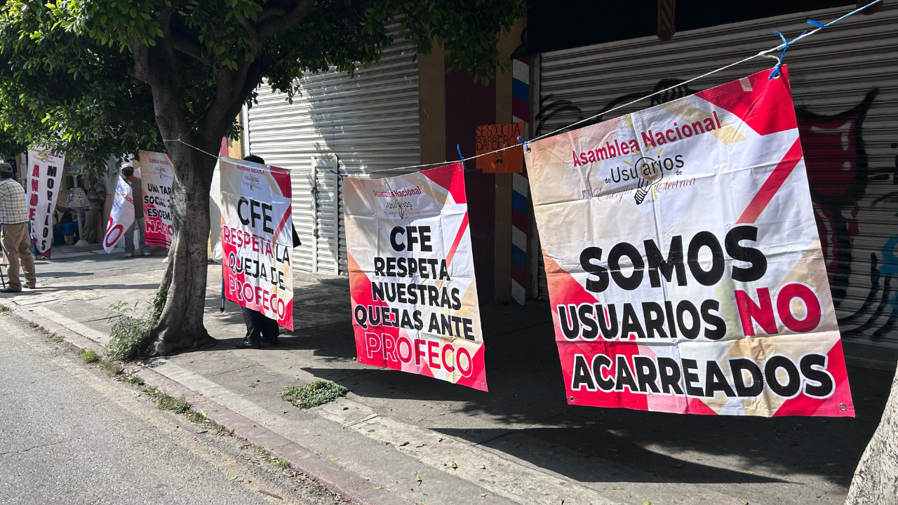 Esta mañana, integrantes de la Asociación Nacional de Usuarios de Energía Eléctrica (ANUEE) se manifiestan tomando las instalaciones de PROFECO, en Cuernavaca.