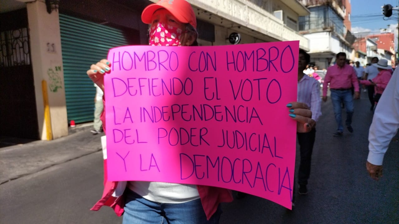 Con la consigna del INE no se toca, inicia la marcha en defensa del instituto en el centro de Cuernavaca.