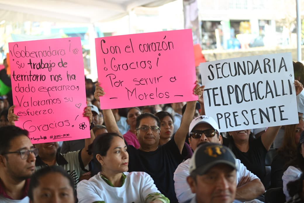 Ante cuatro mil 500 personas provenientes de Atlatlahucan, Tlayacapan, Tlalnepantla, Totolapan y Tepoztlán, reunidas en el Deportivo Huilotepec, la titular del Poder Ejecutivo expresó: “Hoy vengo ante ustedes a cumplir con un deber cívico: informar lo que hemos realizado en este primer año de gobierno. No solo hay que venir en campaña, hay que regresar para decirle al pueblo cómo estamos trabajando, y me da mucho gusto estar en esta región de nuestro estado”.