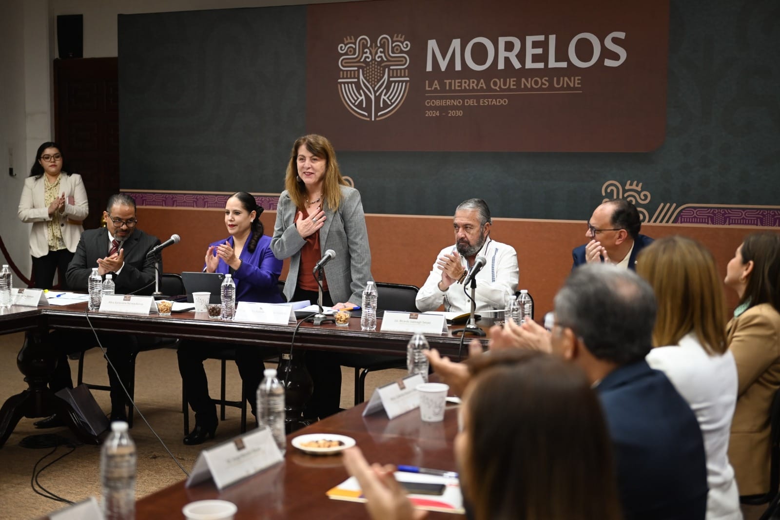 El encuentro se llevó a cabo en el salón Morelos de Palacio de Gobierno, donde la titular del Poder Ejecutivo, como aliada de la educación, realizó diversas propuestas, entre las que destaca una reflexión sobre cómo se están desarrollando en Morelos los valores plasmados en el modelo de la Nueva Escuela Mexicana.