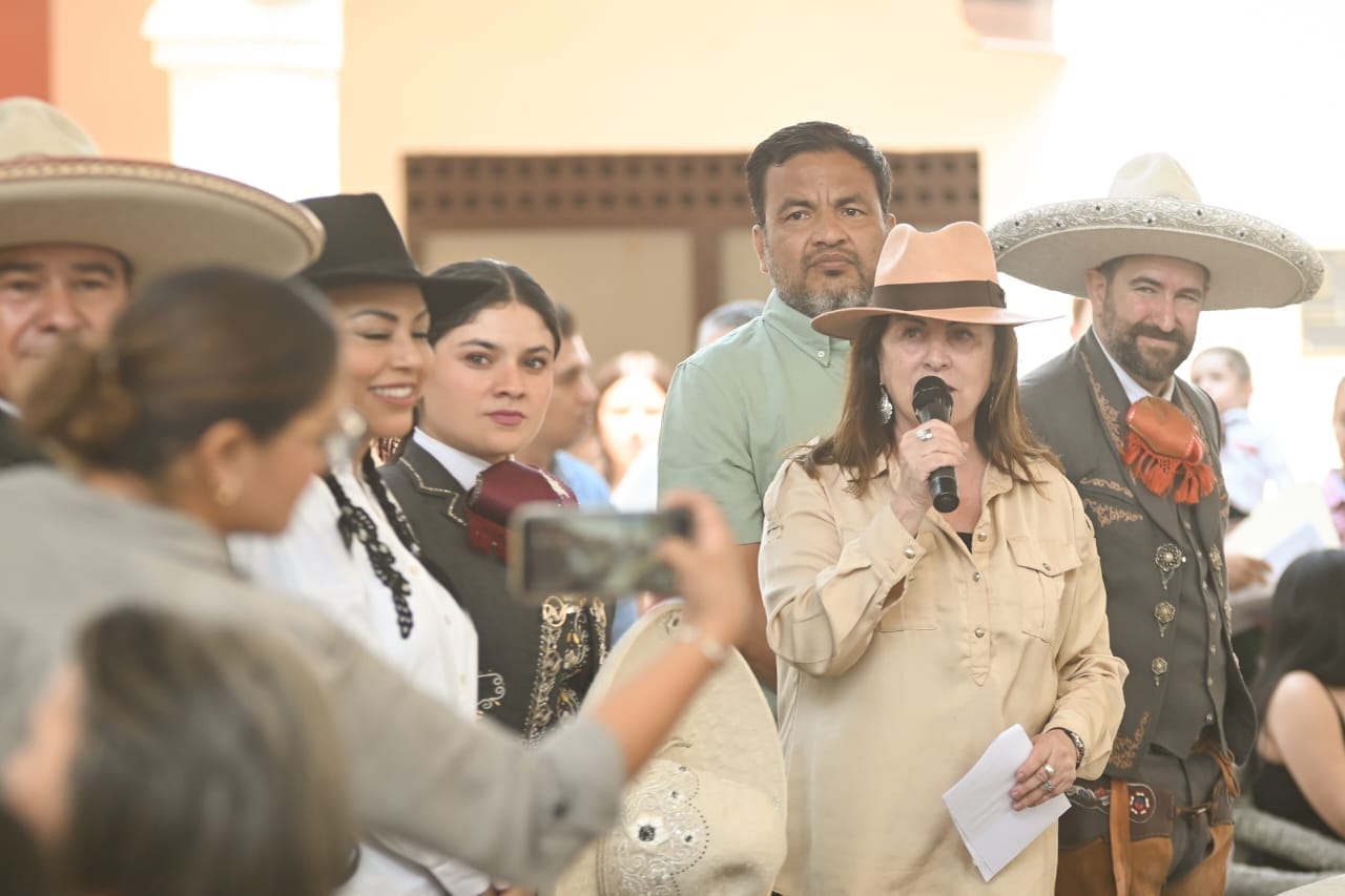 “Para mí como Gobernadora es un orgullo estar aquí, donde se lleva a cabo una de las actividades más bonitas del deporte mexicano, que es la charrería. Les deseo mucha suerte y cuentan con todo nuestro apoyo”, expresó ante asistentes, charros y familias reunidas para celebrar esta competencia.
