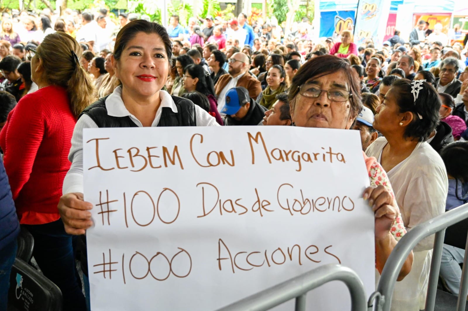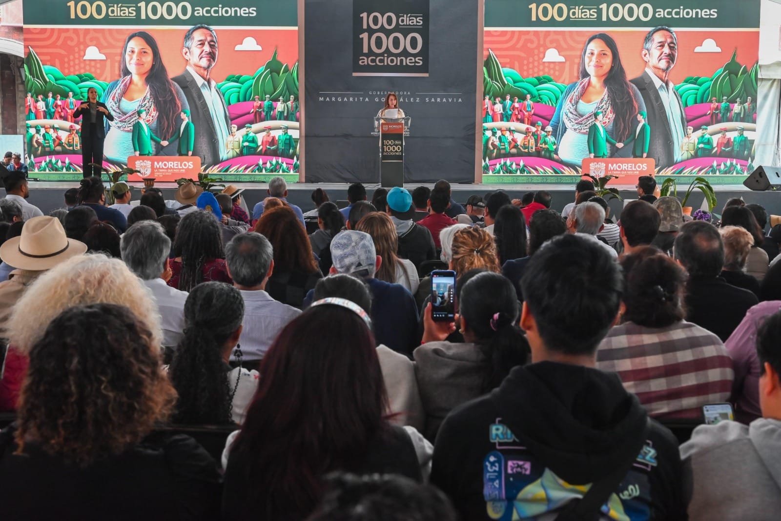 En un evento multitudinario realizado en la Plaza de Armas “General Emiliano Zapata Salazar”, Margarita González Saravia, la primera gobernadora en la historia de Morelos, presentó un balance de los primeros 100 días de su administración, marcados por principios de transparencia, justicia social y los ideales de la Cuarta Transformación.