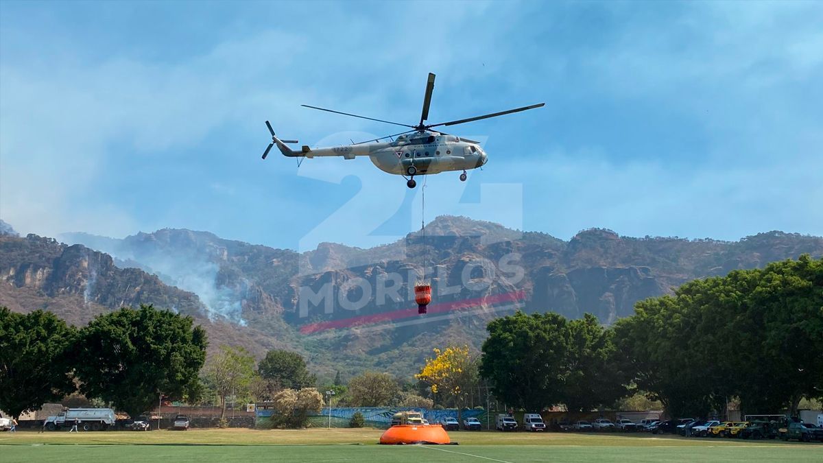 Se tiene el apoyo vía aérea de los helicópteros de la Guardia Nacional y de Secretaría de la Defensa Nacional MI17, los cuales en dos horas han realizado un trabajo de 24 descargas de agua, cada viaje lleva consigo aproximadamente 2 mil litros.