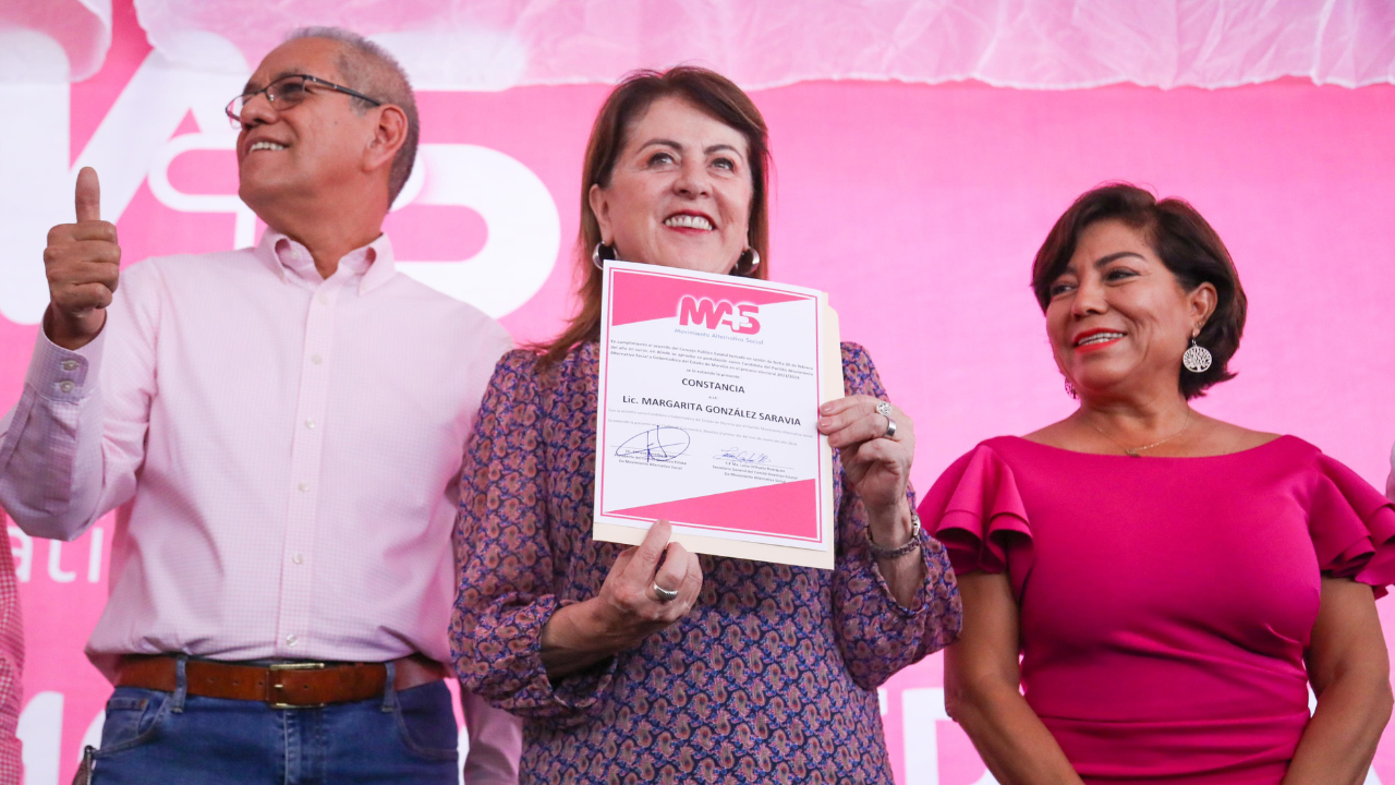La candidata a la gubernatura de Morelos por la coalición “Sigamos haciendo historia”, recibió este viernes su constancia como abanderada del partido Movimiento Alternativo Social (MAS).