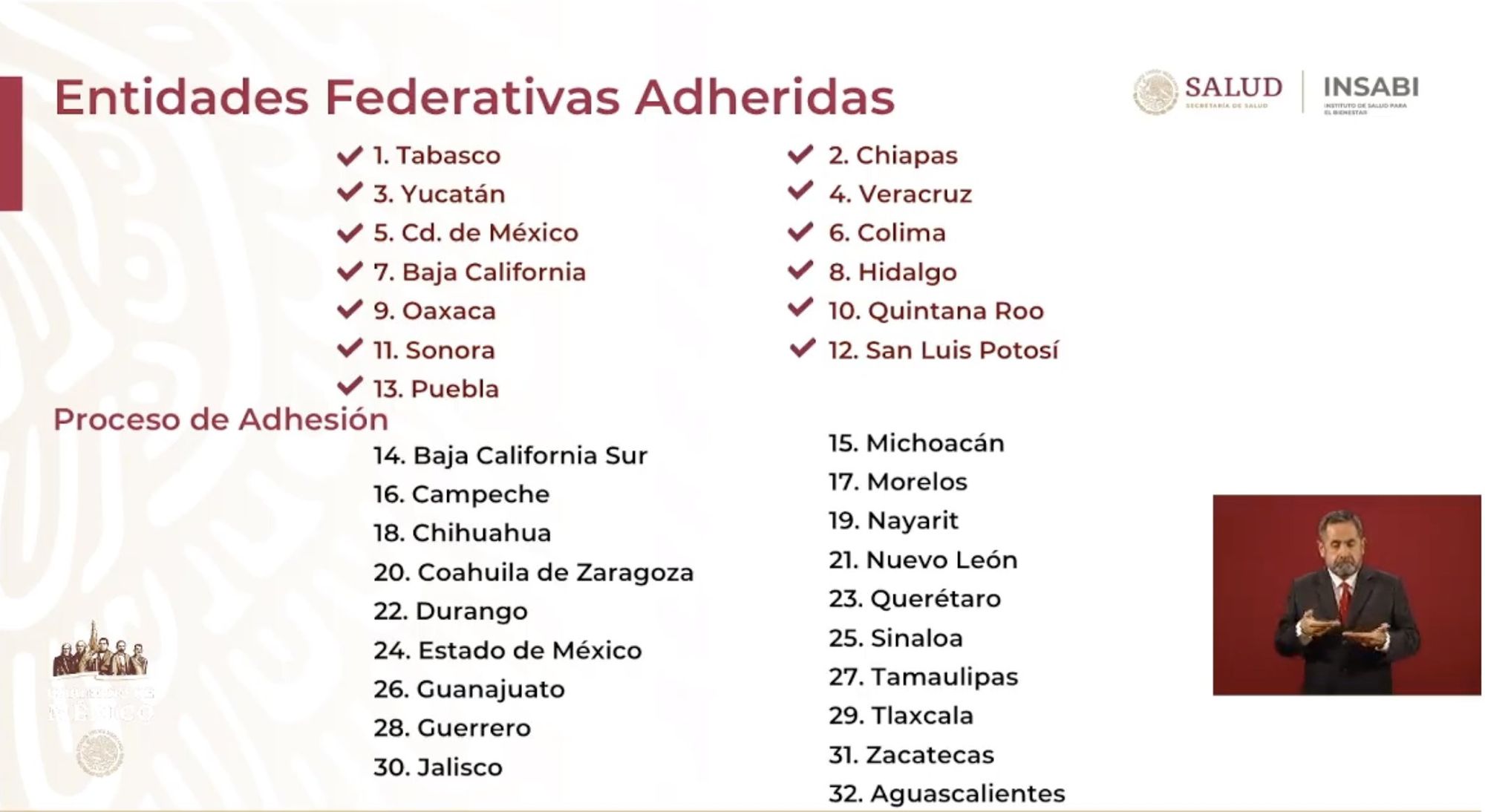 Esta mañana durante su conferencia de prensa, el presidente Andrés Manuel López Obrador, señaló que hasta ahora 13 entidades federativas ya se unieron al programa de salud INSABI, por lo que se espera que más de la mitad de los mexicanos que no cuenten con seguridad social tengan derecho a servicios de salud gratuitos.