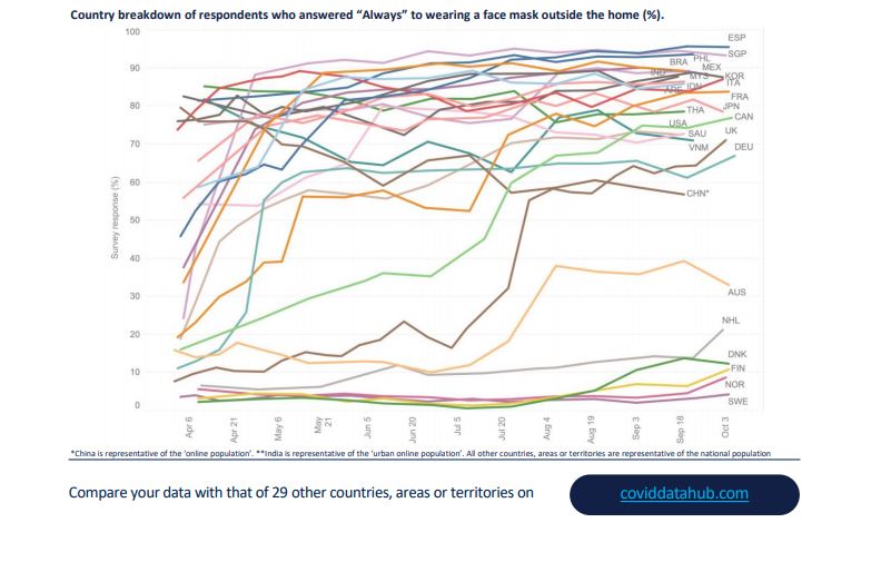 Un estudio de la Universidad Imperial de Londres revela que México es uno de los países que más usa cubrebocas de manera voluntaria, incluso por encima de EE.UU. o Canadá. Alrededor del 80% de los encuestados dice portarlo cada vez que sale de su casa. /content/files/Uvj2kH3wVy.pdfDecember 2, 2020