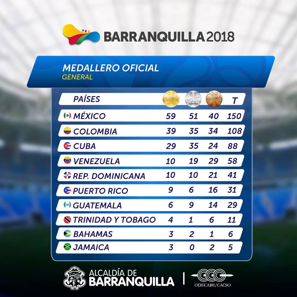 Tras 6 días de competencias, la delegación mexicana continúa arriba en el medallero de los Juegos Centroamericanos y del Caribe Barranquilla 2018.