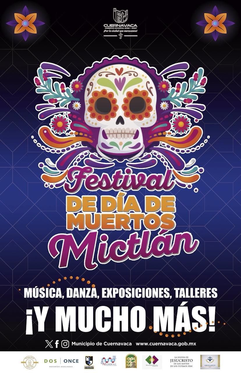 El Festival de Día de Muertos “Mictlán 2025” llega a Cuernavaca del 29 al 31 de octubre, reuniendo arte, música, danza, teatro y ofrendas en distintos puntos de la ciudad para honrar a los fieles difuntos y fortalecer la identidad cultural local.