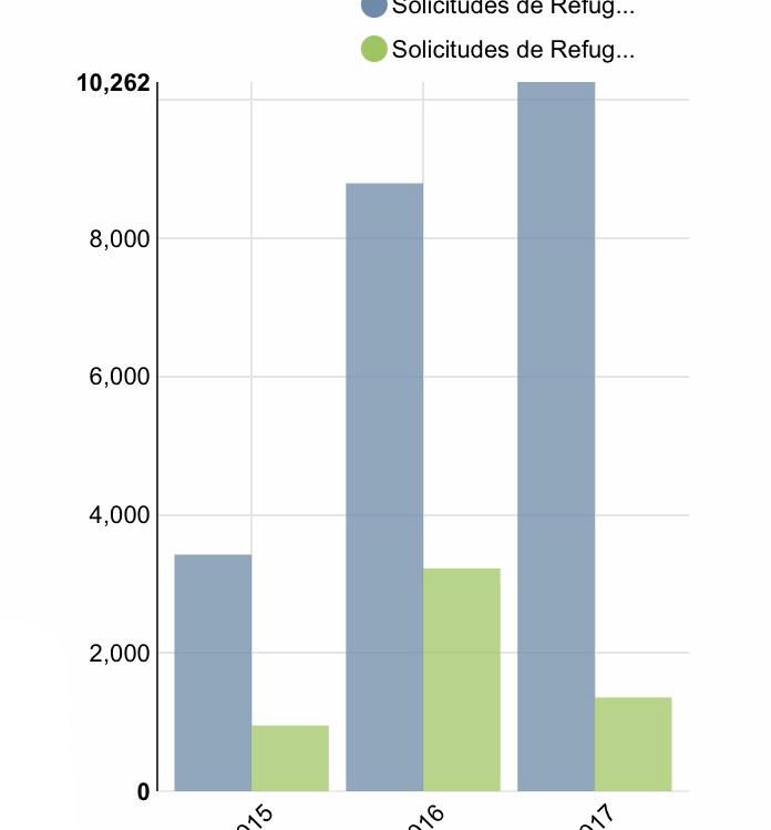 La Comisión Mexicana de Ayuda a Refugiados (COMAR) instancia gubernamental exclusivamente encargada del reconocimiento de la condición de refugiados en Méxicoen el 2015 reportó 3,424 solicitantes, en el año 2016 reportó 8,796 y hasta septiembre de 2017 se reportaron 10,262 otorgando solamente la condición de refugiado a 951 en 2015, a 3,223 en 2016, y 1,357 hasta septiembre del 2017. De acuerdo a las cifras anteriores, es necesario fortalecer dicha instancia para que genere políticas públicas que redunden en una mayor respuesta para los solicitantes.
