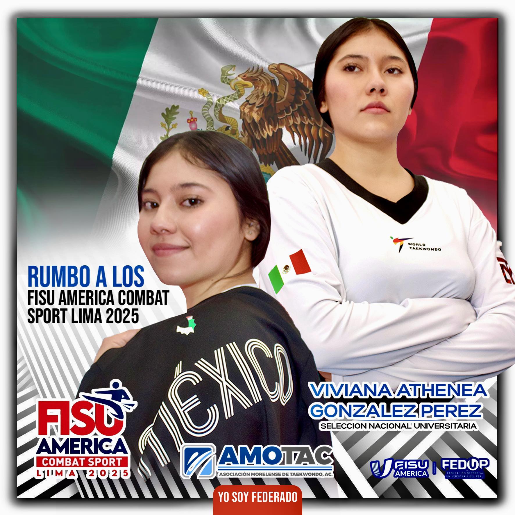 Viviana Athenea González Pérez, orgullosa taekwondoína morelense, ha sido convocada por el Consejo Nacional del Deporte de la Educación (CONDDE) para representar a México en el FISU America Combat Sport. Este evento reunirá a los mejores atletas de combate universitarios del continente del 24 de octubre al 1 de noviembre de este 2025 en Lima, capital de Perú.