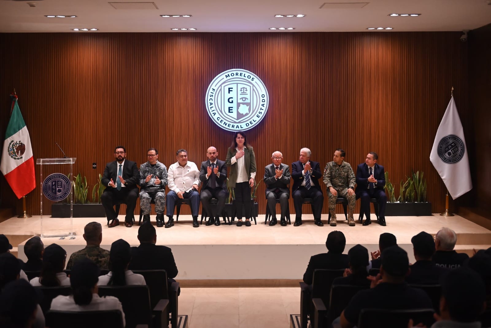 Durante la ceremonia en el auditorio de las oficinas centrales de la FGE, en Temixco, González Saravia señaló que desde la de Mesa de Coordinación Estatal para la Construcción de Paz y Seguridad se toman decisiones estratégicas diariamente para garantizar la seguridad de Morelos. La gobernadora resaltó la importancia de la coordinación interinstitucional, la atención a las causas de la violencia y el profesionalismo del personal.