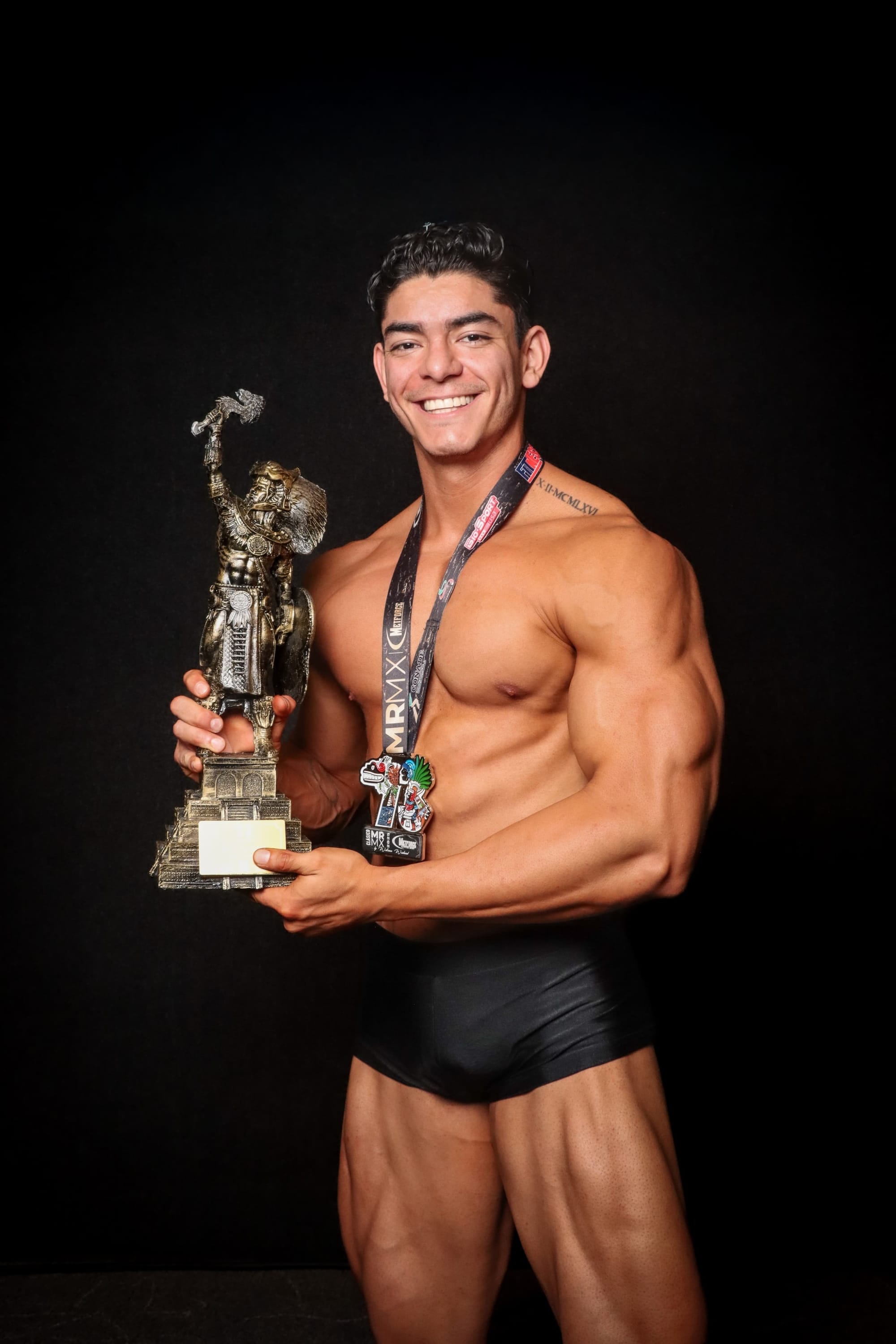 Con apenas 25 años de edad y una década de dedicación al mundo del gimnasio, Miguel Ángel ha construido su éxito con disciplina, constancia y sacrificio. Su alimentación rigurosa y su seguridad al posar en tarima lo han convertido en un competidor de alto nivel, dueño de un físico completo, tanto en tren superior como inferior.
