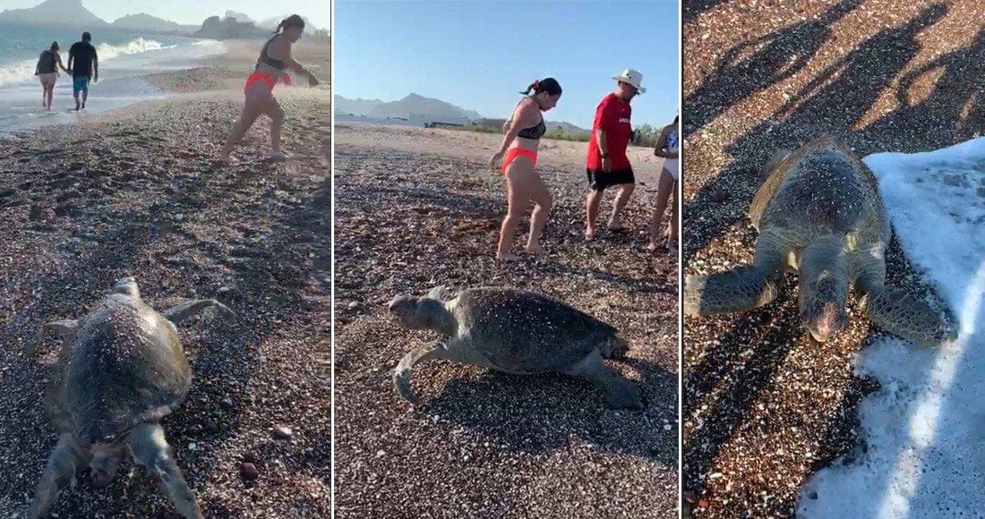 Un video muestra la agonía y muerte del reptil en una playa de #Guaymas, #Sonora, la cual se atribuye al incidente ocurrido en días pasados, en las instalaciones de Grupo México.