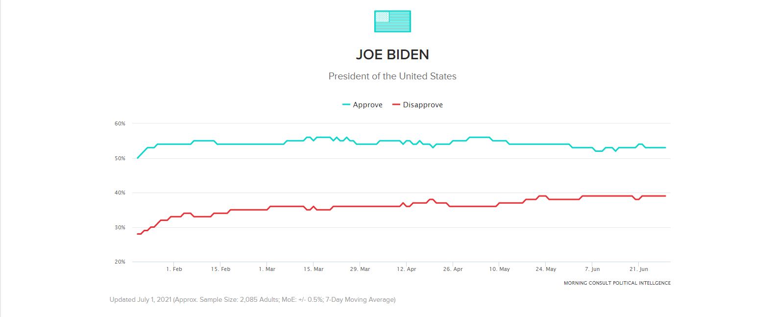 López Obrador se encuentra con un 66 % de aprobación y 26 % de desaprobación, al corte del 29 de junio de este año. Se encuentra por encima de su homólogo estadounidense, Joe Biden, y el primer ministro canadiense, Justin Trudeau.