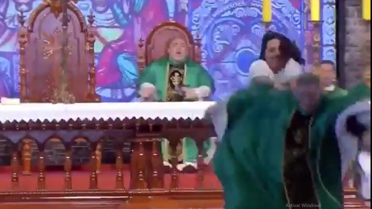 El sacerdote, que se ha convertido en una figura pública en ese país, resultó ileso y continuó con la misa sin ningún problema, sin embargo, el video se ha hecho viral por el impacto de las imágenes.