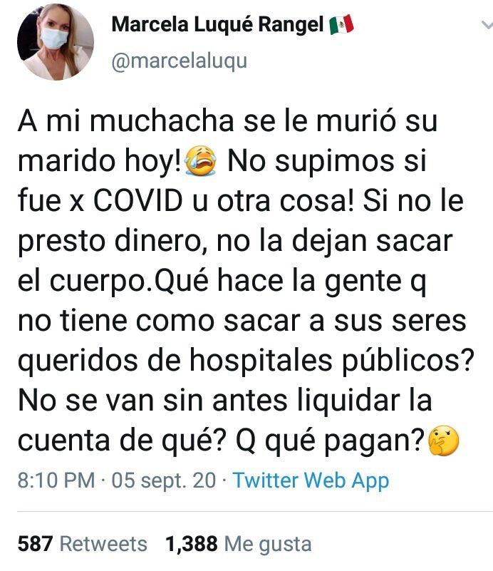 Fue a través de su cuenta en Twitter, donde al exponer una situación que vivió la trabajadora del hogar, referente al fallecimiento de su esposo por COVID-19, Luque Rangel empleo los términos clasistas, mismos que le dieron el mote de #LadyMiMuchacha.