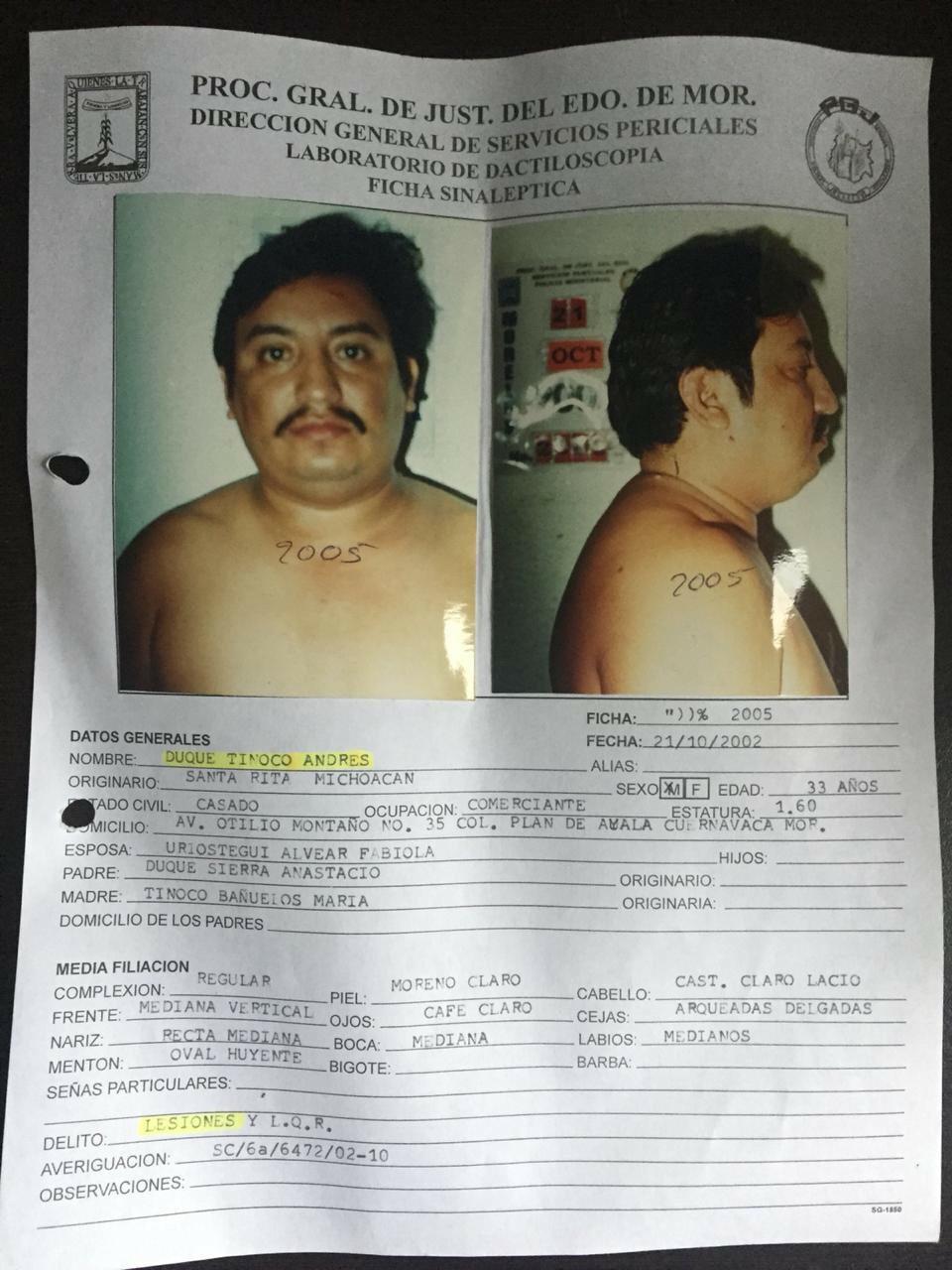 Esta es la ficha emitida por la Procuraduría General de Justicia del Estado de Morelos: