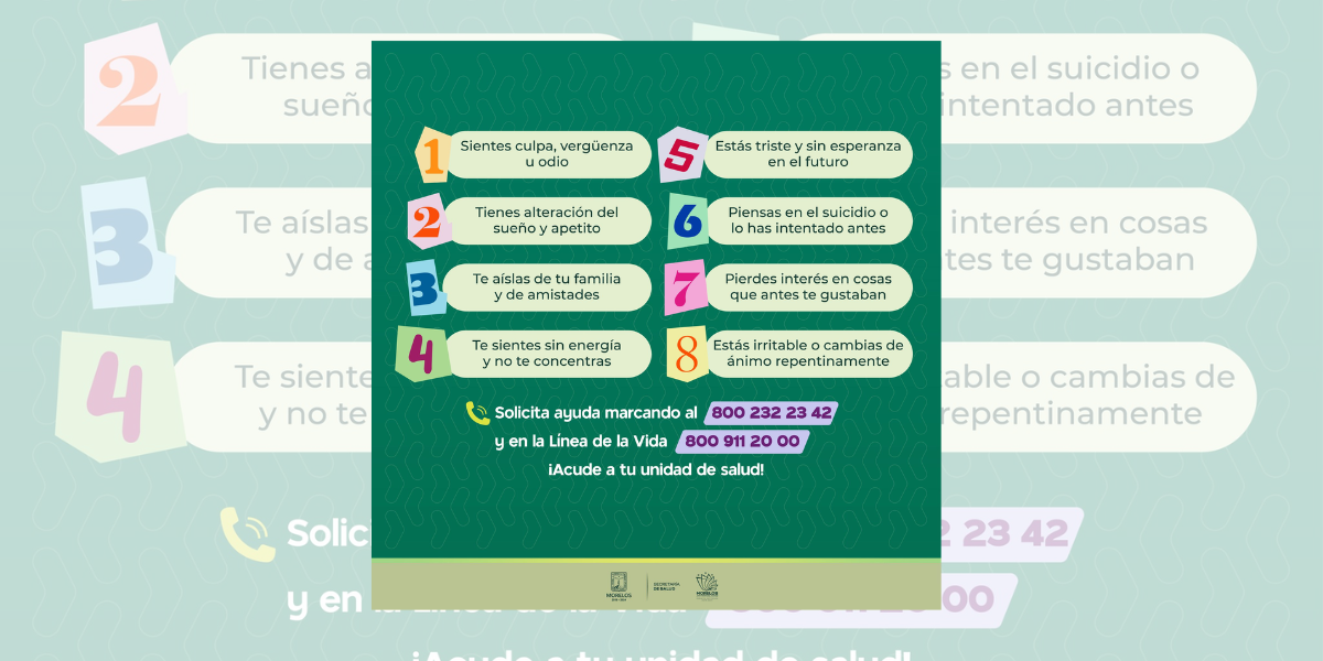 SSM puso a disposición la Línea de la Vida: 800 911 2000, o al teléfono 800 232 23 42, ambas gratuitas.