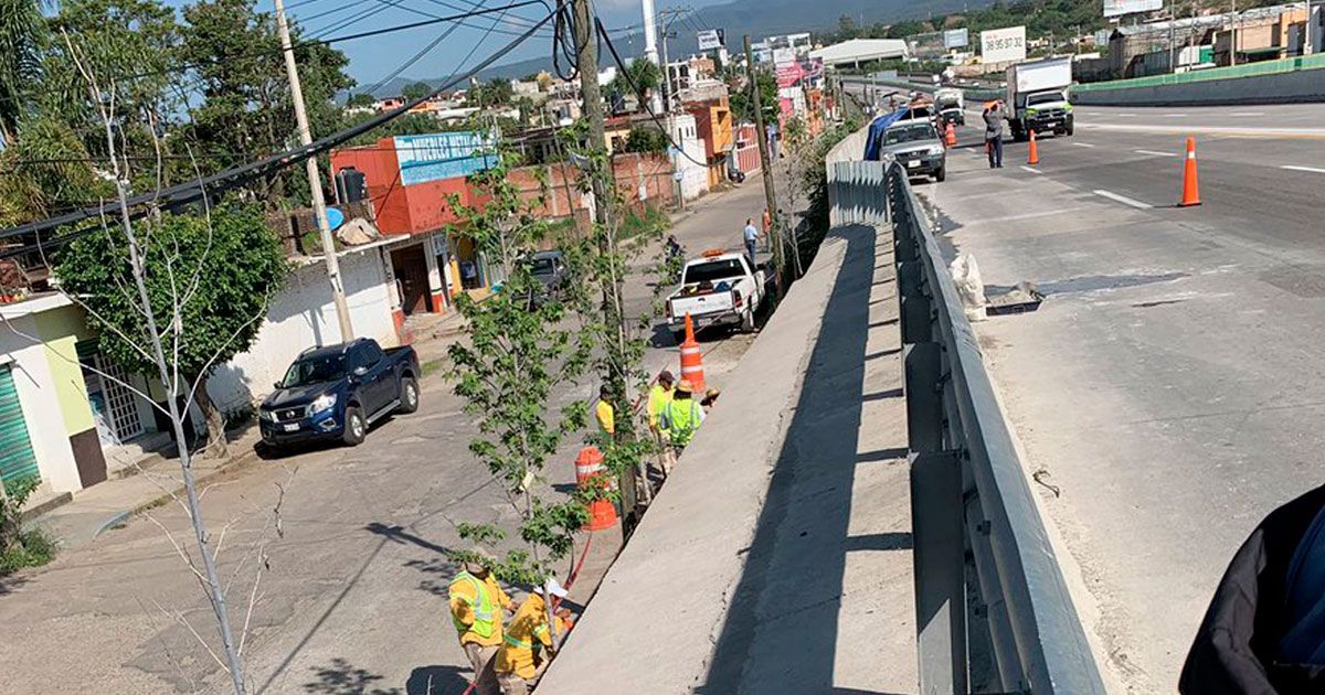 Entre ellas destaca la instalación de dispositivos de señalamientos de protección de obra, cierre de circulación en el carril de baja, apuntalamiento del muro afectado, sellado de la grieta longitudinal, colocación de bordillos para canalizar escurrimientos, entre otras.