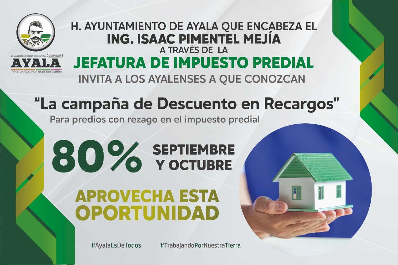 El gobierno municipal de Ayala, encabezado por Issac Pimentel Mejía, da inicio a un programa, el cual está enfocado en que los ciudadanos se regularicen en el pago del predial, actualizaciones catastrales y varios servicios municipales.