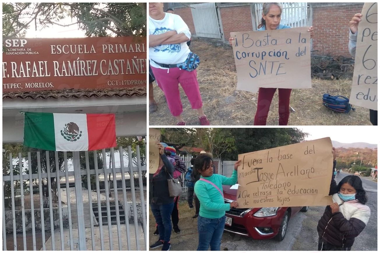 Padres de familia de la escuela primaria “Profesor Ramírez Castañeda” de la colonia Miguel Hidalgo de Yautepec, se manifestaron en la carretera Yautepec-Jojutla para exigir que se cubra la plaza del profesor, Josué Arellano.