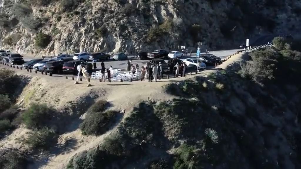 En cuanto al lugar para la ceremonia no tuvieron que desembolsar dinero, ya que decidieron realizarlo en un mirador gratuito justo a lado de una de las autopistas de California.