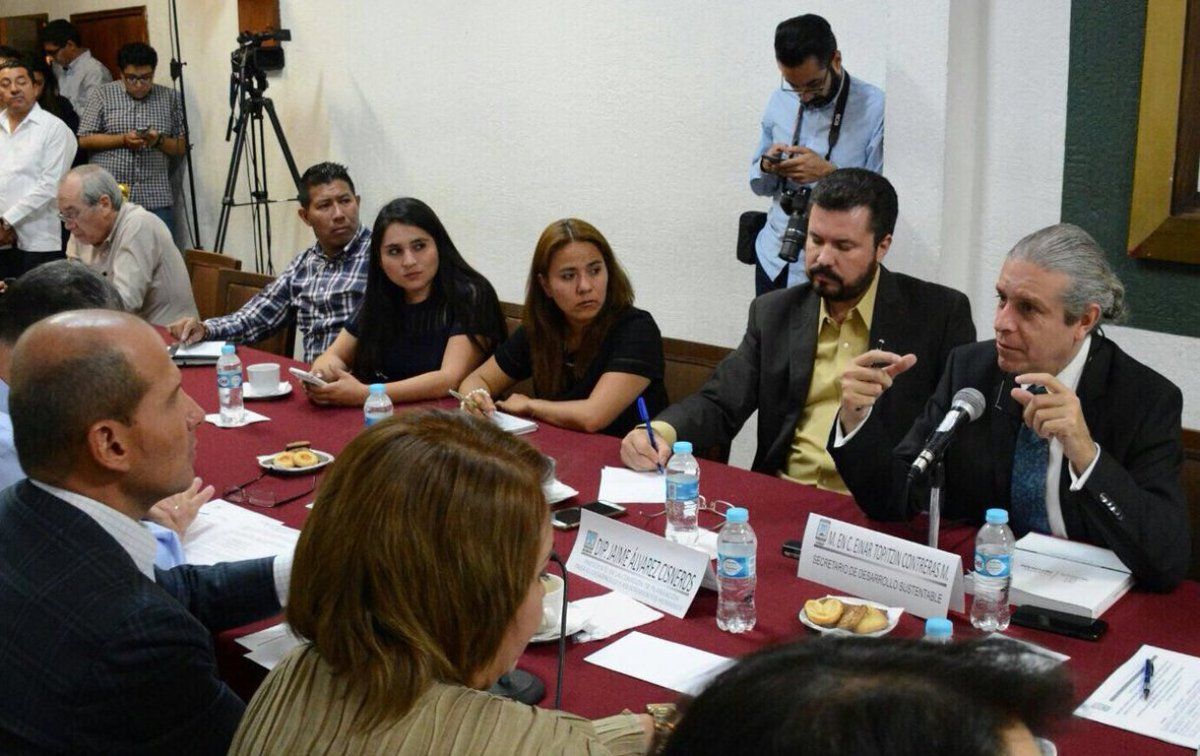 El diputado panista, Alberto Mojica Linares, realizó una rueda de prensa en compañía del Secretario de Desarrollo Sustentable, Topiltzin Contreras McBeath, para hablar sobre la situación en la que se encuentran las instalaciones del Parque Ecológico Chapultepec.