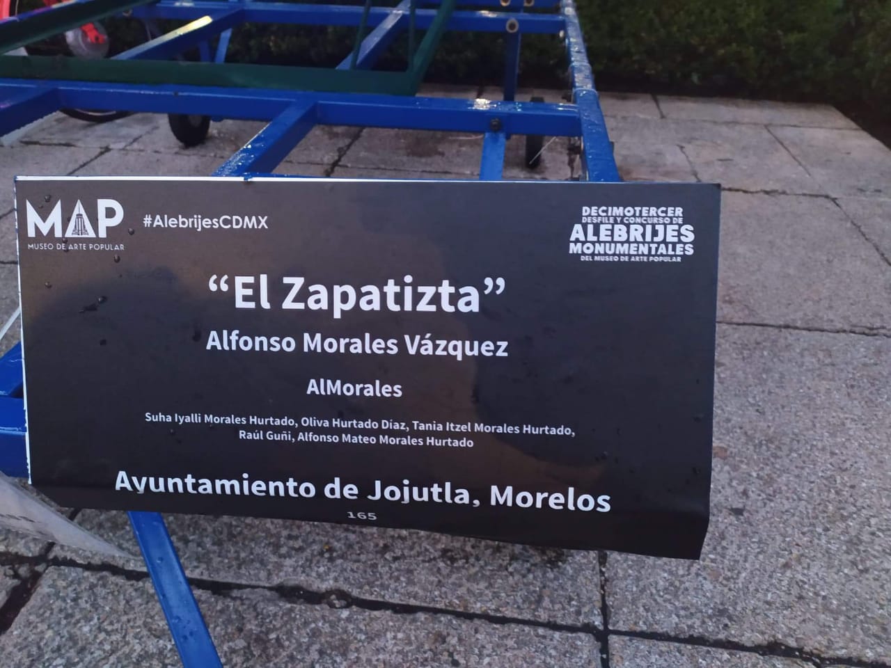 “El Zapatizta”, como lo nombró, se exhibe en Paseo de la Reforma hasta el Ángel de la Independencia junto con otras obras, y estarán en el lugar hasta el 17 de noviembre de este año.