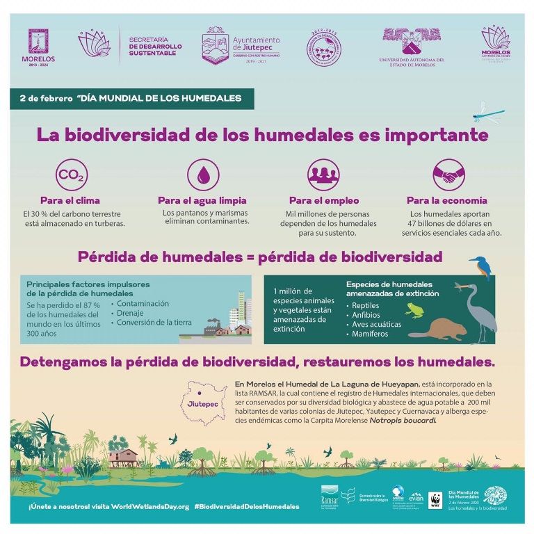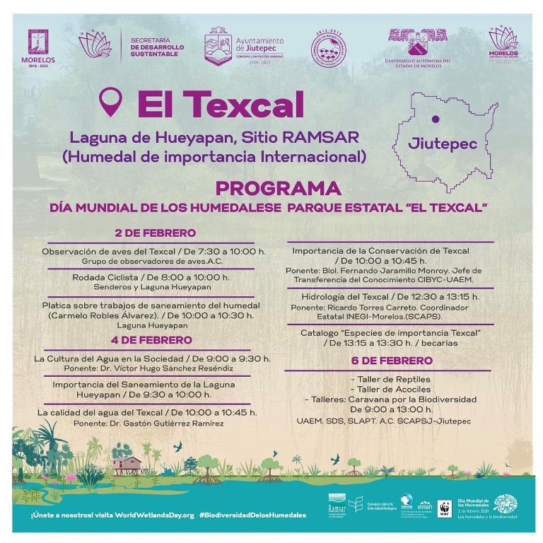 En el marco del Día Mundial de los Humedales, la Secretaría de Desarrollo Sustentable (SDS) de Morelos ha organizado un programa donde podrás realizar observación de aves, rodada ciclista, aprender sobre el saneamiento de la Laguna de Hueyapan y participar en los talleres.