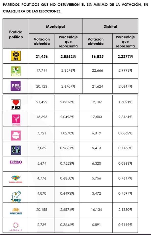 Tras los comicios del 6 de junio, los reconteos e impugnaciones, por fin se sabe cuáles partidos políticos a nivel local han perdido el registro por no lograr el 3 % de votación necesaria.