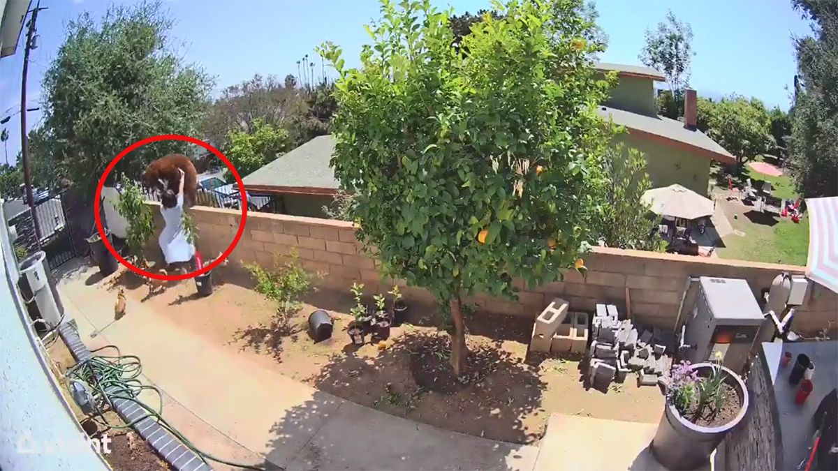 En el video se observa como la osa cae por la barda mientras su cachorro huye de la escena, para que Haley tomará a su perrito y huyera con todos hacia dentro de su casa.