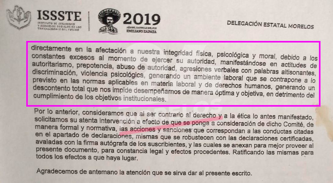 La hermana del ex candidato a la gubernatura de Morelos por el PRI, Jorge Meade Ocaranza, es la principal señalada de ejercer violencia verbal y malos tratos a los trabajadores del ISSSTE.