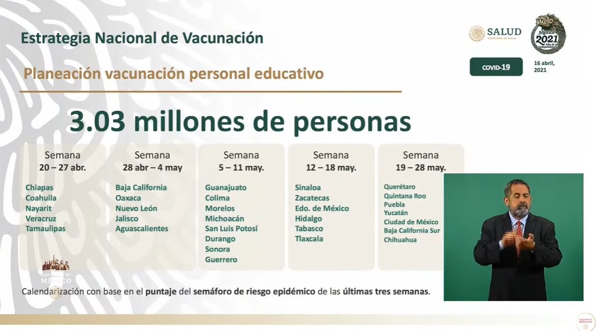 Cabe recordar que las autoridades federales de Salud informaron el pasado 16 de abril que la vacunación para docentes en Morelos será del 5 al 11 de mayo con la dosis de CanSino, sin embargo el mismo Gobierno de México no ha dado a conocer más detalles sobre el protocolo que se debe seguir.