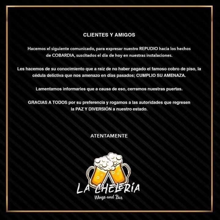Se trata de “La Chelería”, mismo que después de la agresión, anunciaron el cierre al negarse al famoso “cobro de piso”.
