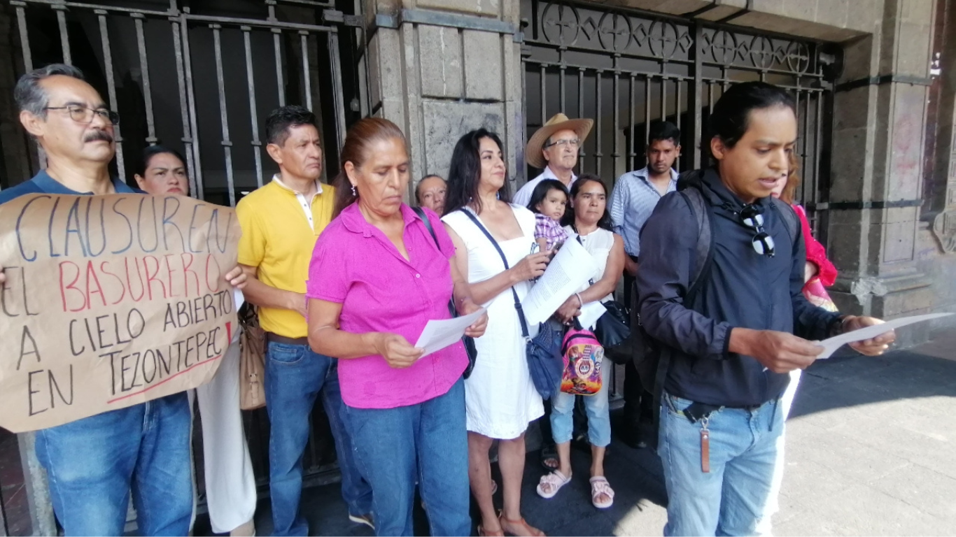 Vecinos de las colonias Tezontepec, Jardines de la Hacienda, Lomas de Jiutepec, Colorines, Tepec, Jiutepec Centro, condominio Tezontepec y Huayacan del municipio de Jiutepec se congregaron de manera pacífica en el zócalo de Cuernavaca para solicitar de manera urgente extinguir el incendio de la mina de Tezontepec.