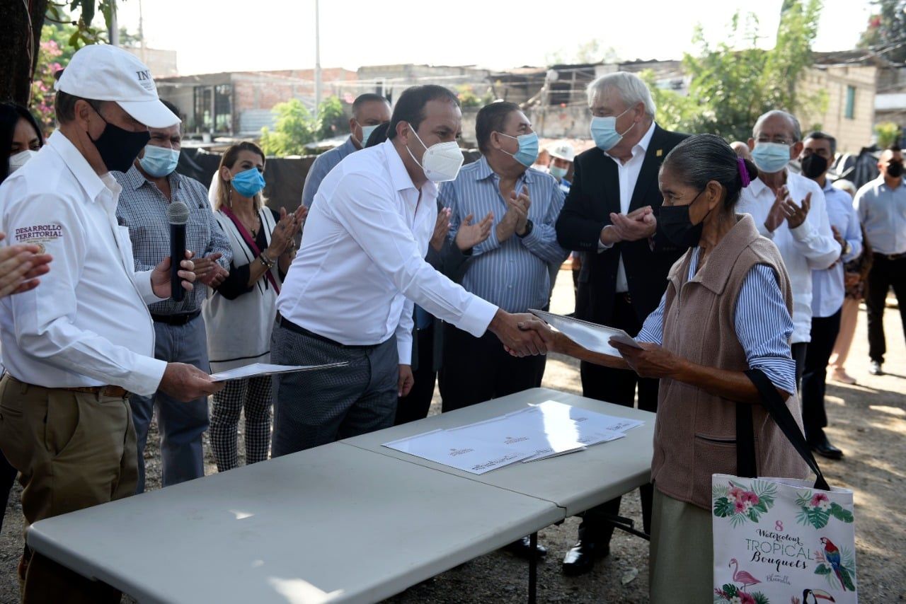 El Poder Ejecutivo Federal trabajó en conjunto con Cuauhtémoc Blanco Bravo, gobernador de Morelos, para hacer la entrega formal de escrituras para las familias de Patios de la Estación, en el municipio de Cuernavaca.