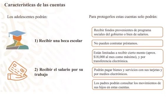 Los becados podrán recibir fondos provenientes de programas sociales del gobierno, o bien, de salarios; las cuentas solo pueden recibir un monto limitado cercano a los 18 mil pesos al mes y solo por transferencia electrónica.