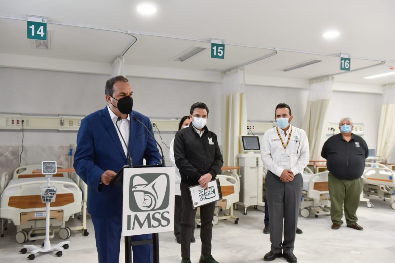 Blanco Bravo recalcó que Morelos está en la lucha contra la pandemia apegado a la estrategia nacional, y que sumado a los esfuerzos realizados por el IMSS se puede brindar un servicio de calidad, protegiendo también al personal que se encuentra en primera línea de batalla.