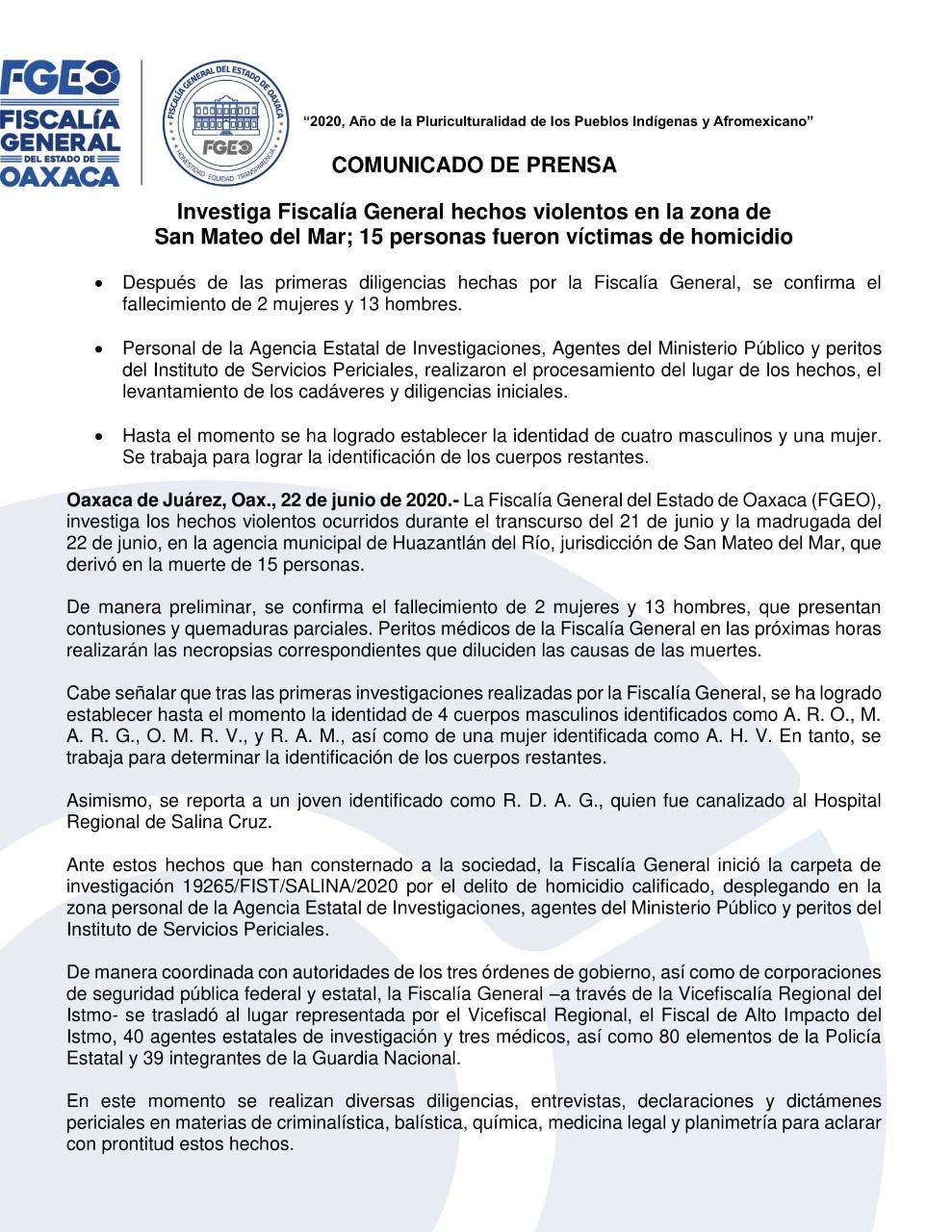Con información de la Físcalía General del Estado de Oaxaca y El Universal.