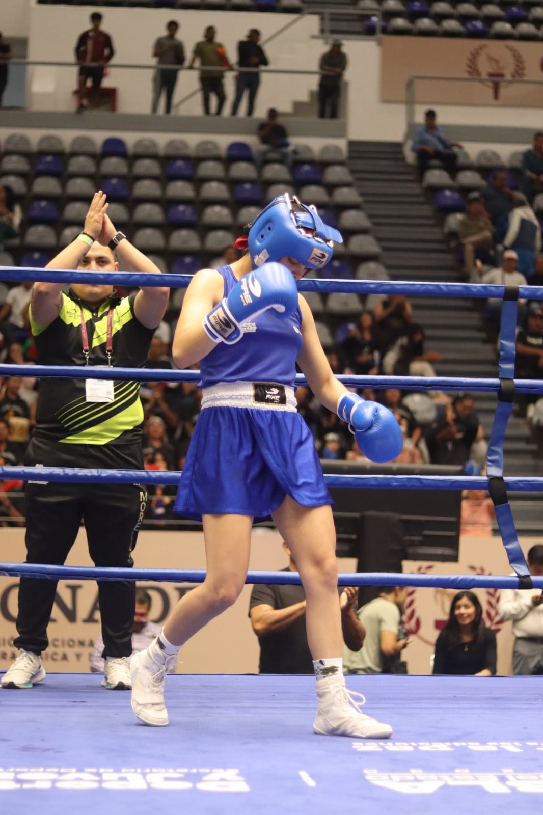Después subió al ring Abigail Benítez, quien impuso su ritmo desde el primer asalto y terminó dominando las acciones frente a Aurora Castro de Coahuila, llevándose la victoria por decisión unánime en la división welter ligero 63 kilogramos.
