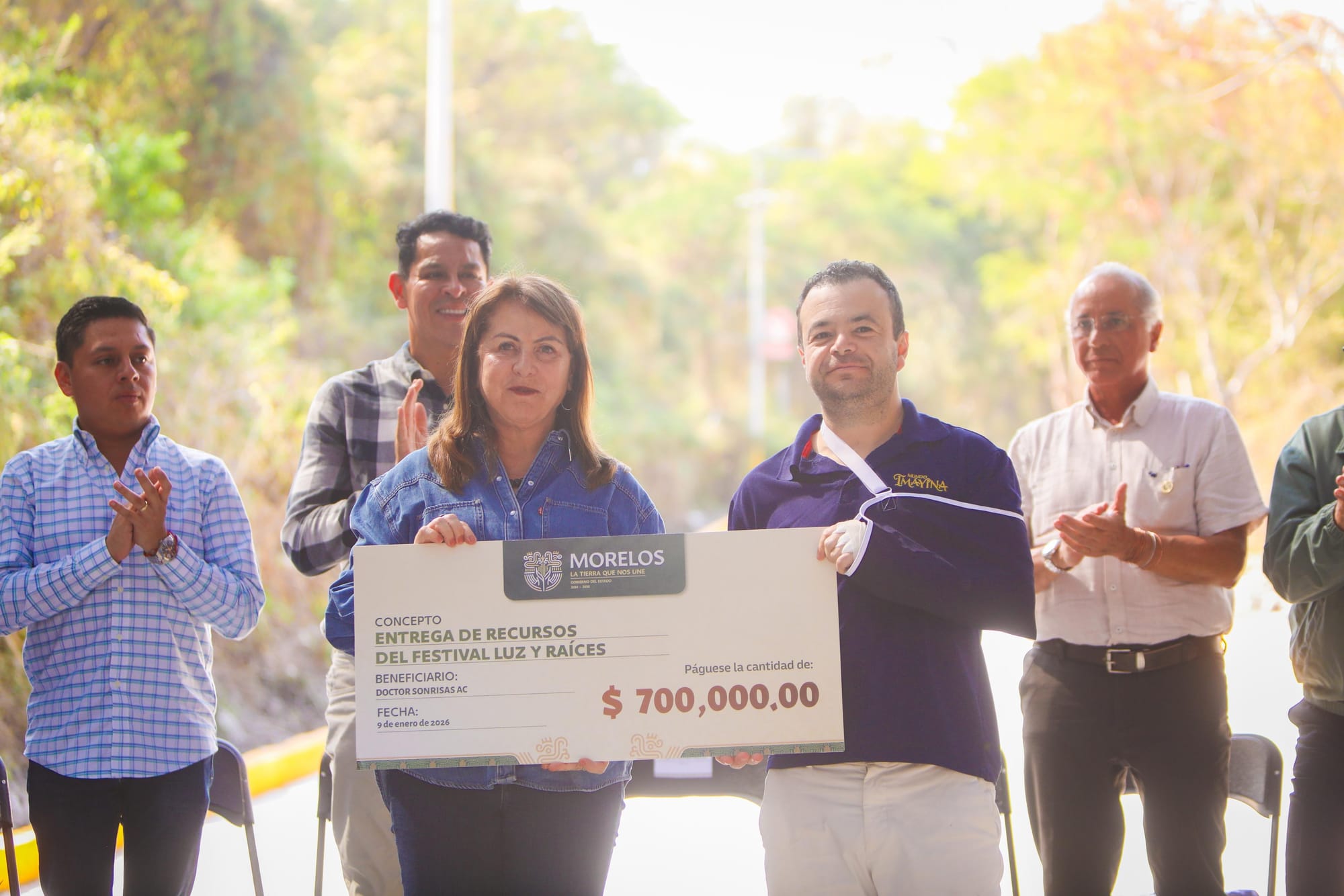 Durante la visita, la mandataria entregó la totalidad de la taquilla de la primera edición del Festival Internacional “Luz y Raíces”, por 700 mil pesos, a Mundo Imayina, para fortalecer actividades recreativas gratuitas dirigidas a niñas y niños con enfermedades crónicas y terminales, impulsando también la proyección turística del sur de Morelos.