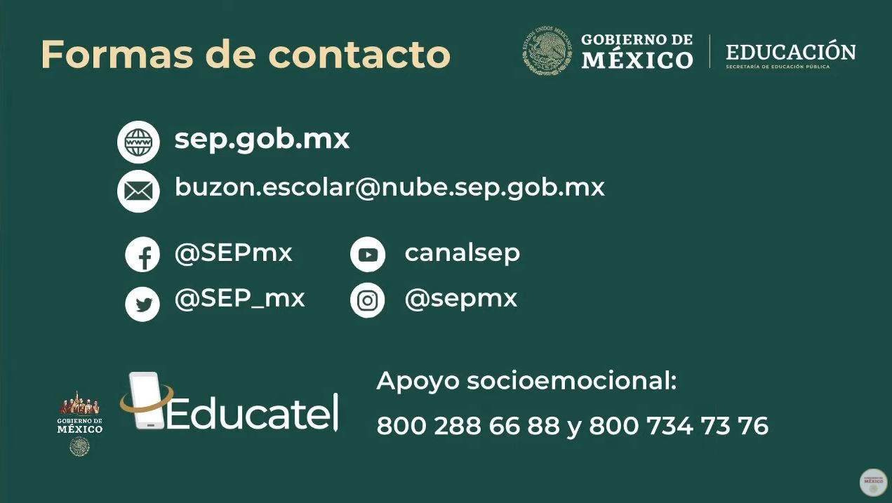 ¿Tienes dudas sobre el regreso a las aulas? Comunícate con la SEP a través de los siguientes contactos.