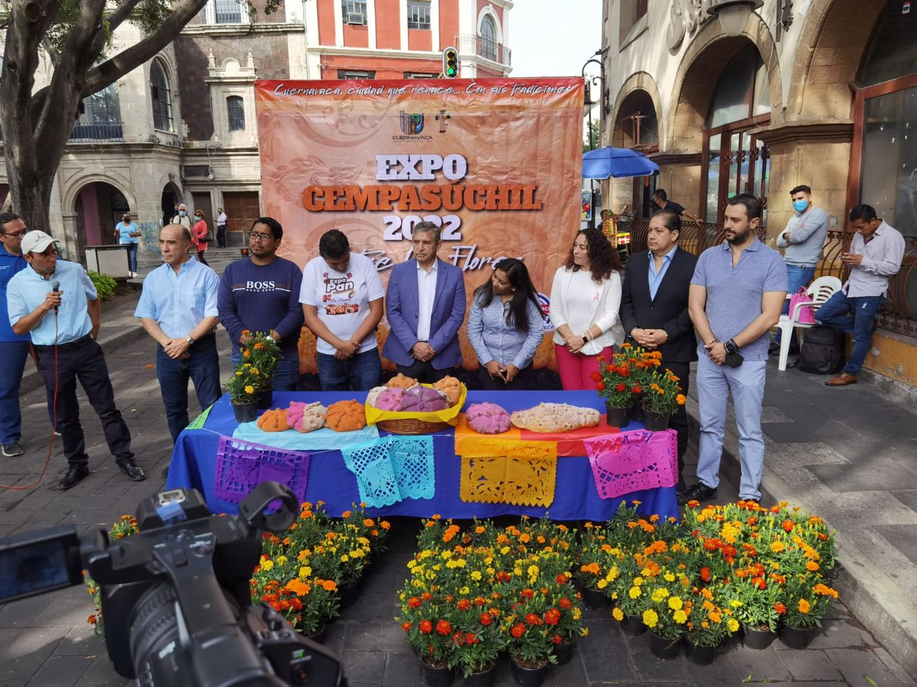 Autoridades del Ayuntamiento de Cuernavaca llevaron a cabo la presentación de la Expo Cempasúchil 2022 y la catrina monumental de pan en el marco de la celebración del Día de Muertos.