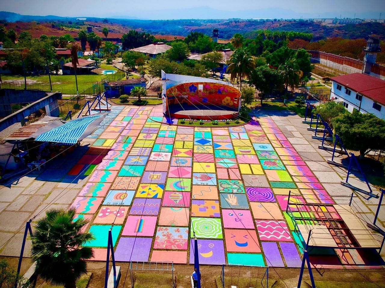 Como parte de las acciones, el patio central del penal fue intervenido con murales y elementos visuales, entre ellos cartas de lotería y símbolos de la cultura popular, que transformaron un espacio cotidiano en un entorno más amable, colorido y significativo. Las obras fueron realizadas de manera conjunta con las propias PPL, quienes participaron activamente en el diseño y la ejecución, fortaleciendo la confianza, el sentido de pertenencia y el trabajo en equipo.